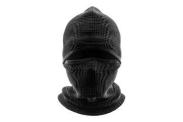 Portrait Of A Person In Black Balaclava And Handcuffs On Transparent Isolated Background