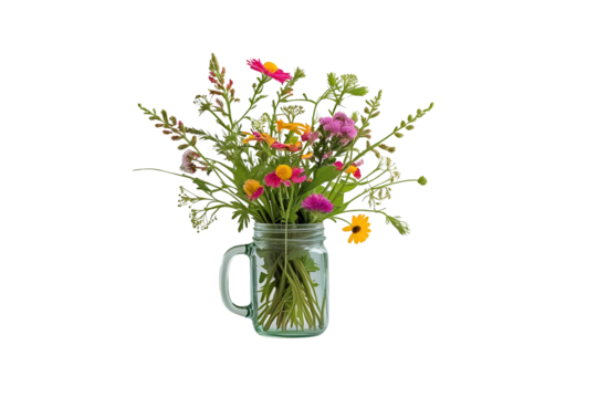Transparent background botanical bouquet in mason jar illustration