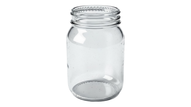 Empty mason jar PNG isolated on transparent background, clear glass container for canning, preserving and food storage