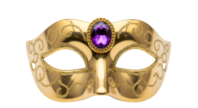 Festive Gold Mask for Party or Carnival PNG Isolated on Transparent Background PNG