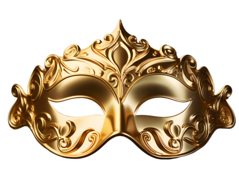 Purple and gold masquerade mask with ornate design isolated on a transparent  background in clipart illustration style
