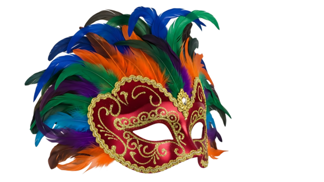 Ornate traditional venetian masquerade mask on transparent background, symbolizing mystery, elegance, and carnival celebration