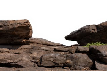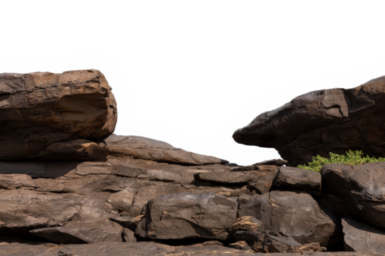 A steep mountain peak with heavy snow isolated on white background, a rocky alpine summit in winter, a cold nature landscape cutout, a massive geological formation.