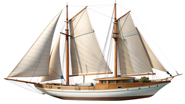 Sailing vessel isolated on transparent background, a classic boat with sails, representing maritime transport and nautical adventure
