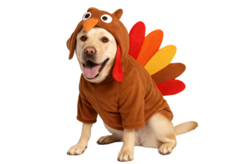 Dog in a turkey costume on a transparent background