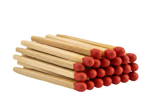 Matchbox with wooden matches and red tips, providing fire, light, and energy, on transparent background