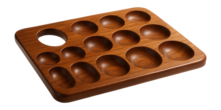 Wooden palette with multiple wells