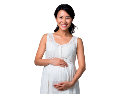 Profile of pregnant caucasian female's belly. Cut out PNG