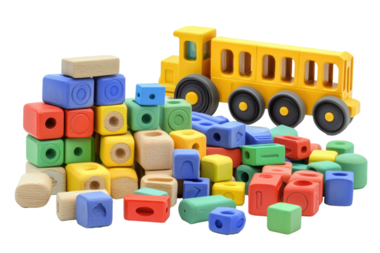 Wooden Blocks Set Isolated on Transparent or White Background, PNG