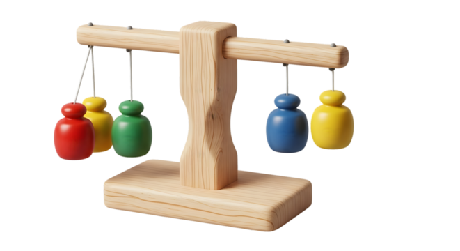 A collection of wooden abacus parts showing different orientations and configurations for calculation isolated on transparent background