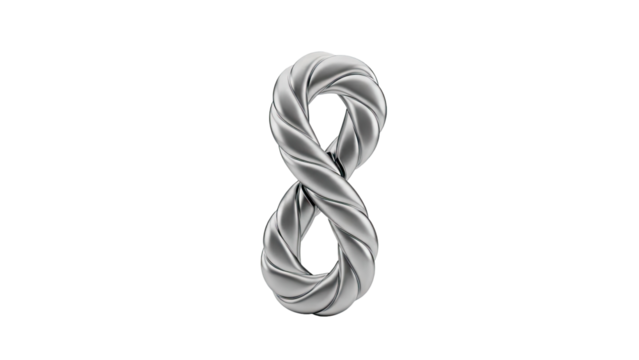 Golden infinity symbol isolated on transparent background, representing eternal love, endless possibilities, and the limitless nature of time