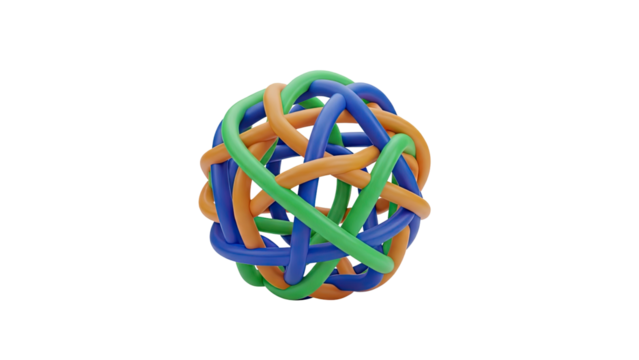 3D Abstract sphere of intertwined colorful tubes on transparent background