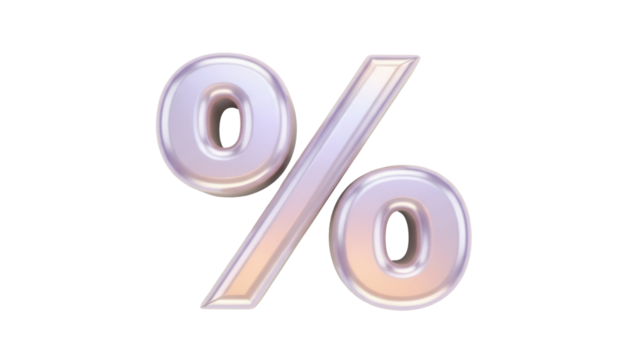 Shiny percentage sign isolated PNG on transparent background, 3D rendering of a mathematical symbol for graphic design and financial concepts