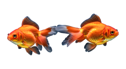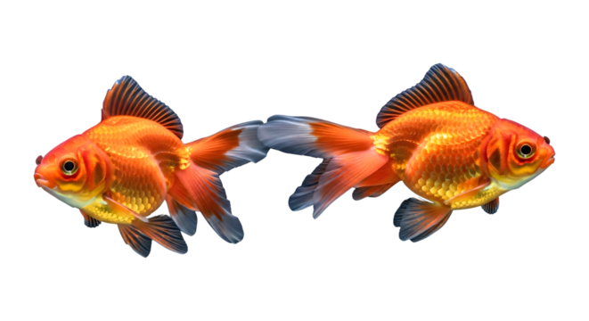 Two goldfish connected by their tails isolated on transparent background