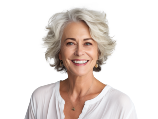 attractive older woman, png file of isolated cutout object with shadow on transparent background.