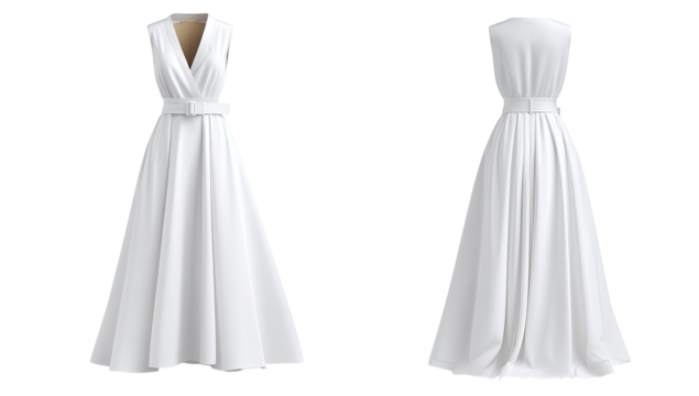 Elegant white tiered maxi dress for women, isolated on transparent background