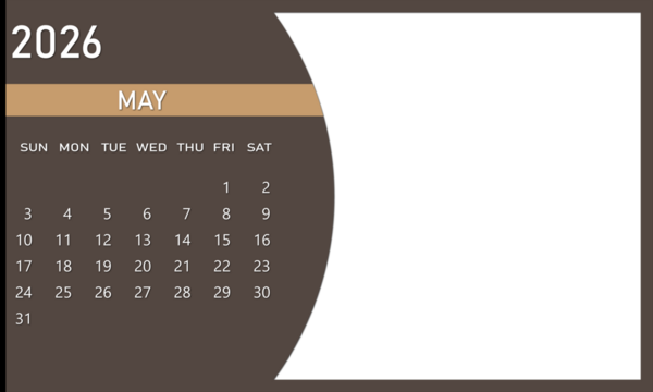 May 2024 ENGLISH month calendar. png transparent printable illustration. Monthly