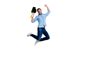 Joyful Graduate Holding Book, Ready for the Future – Transparent Cutout