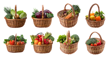 Colorful Variety of Fresh Vegetables in Baskets on a White Background, PNG bundle collection, Isolated on Transparent Background