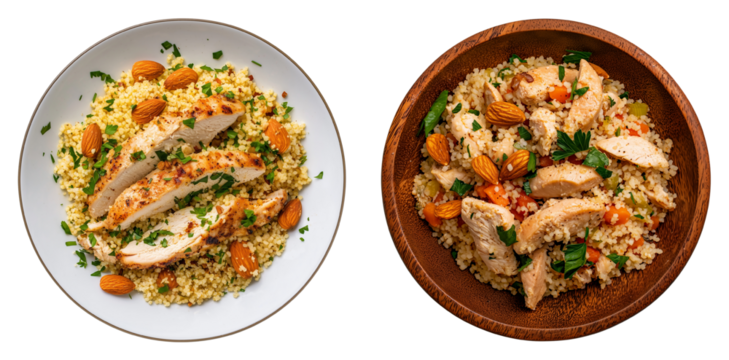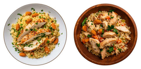Healthy meal prep chicken broccoli quinoa kitchen food isolated on transparent background