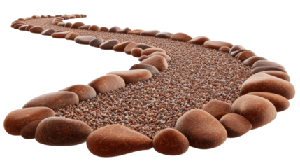 Rustic dirt road path cutting through rocks on transparent background