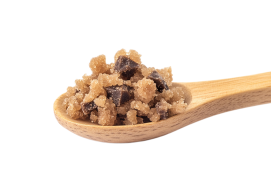two protein shakers and a small pile of brown powder isolated on a transparent background