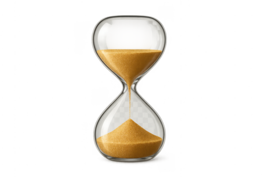Sand timer with sand running through for time management concept isolated PNG with Transparent Background
