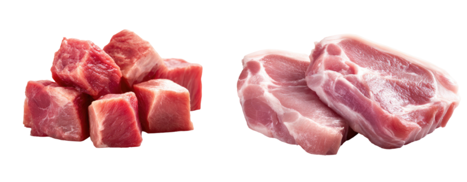 Raw Red Meat Chunks isolated on white transparent background
