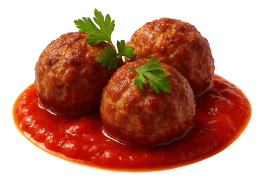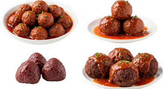 Delicious meatballs with sauce food photography isolated on transparent background