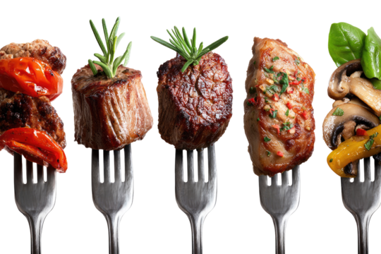 Assortment of grilled meats and chicken legs isolated on transparent background