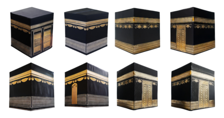 Detailed View of Kaaba Structure with Artistic Golden Patterns, isolated on transparent background