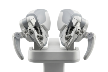 Transparent robotic arm claw mechanism on white background