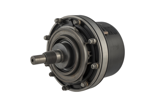 Vintage aircraft engine starter motor assembly isolated on transparent background