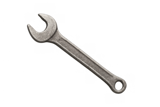 Collection of various sizes of wrenches arranged in a straight line showcasing tools for mechanical work in a minimalistic style