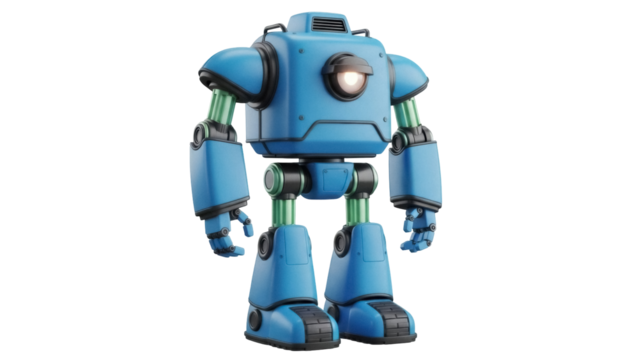 Confident male mechanic smiling in blue uniform with transparent background