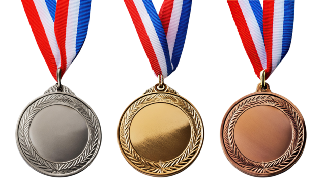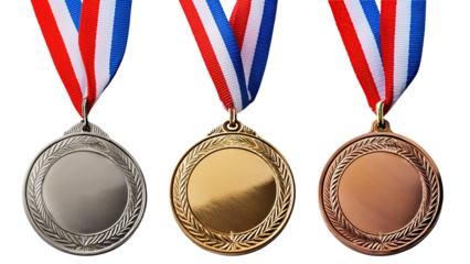 Athlete celebrating victory with gold medals and american flag, transparent background