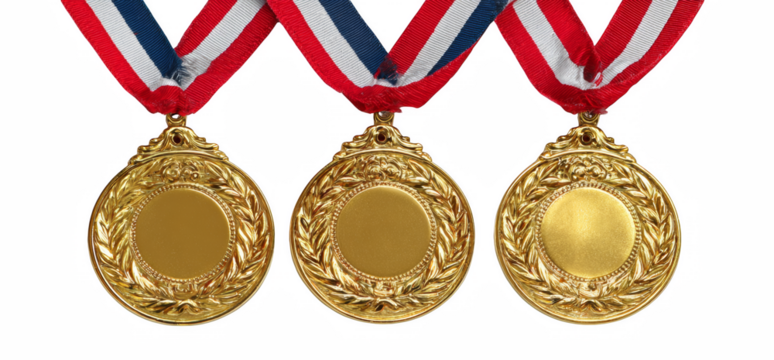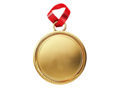 Gold Medal on Red White Blue Ribbon, Transparent Background