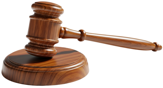 Gavel judge court law justice auction legal wooden hammer wood courtroom bid sale on transparent background