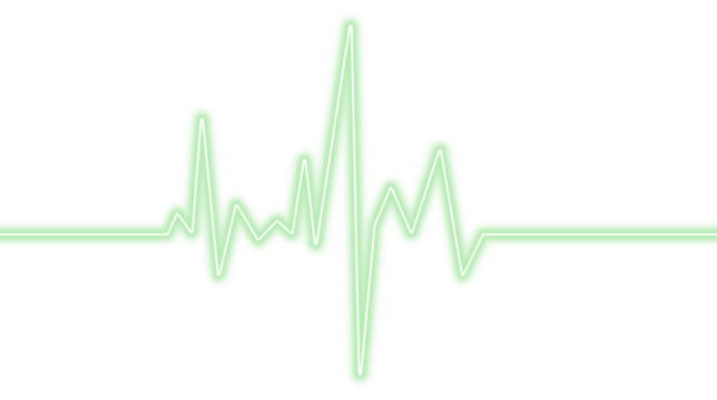 Green glowing neon ECG heartbeat line forming a heart pulse on a PNG background. Medical cardiogram concept symbolizing heart rhythm, health monitoring, and cardiology technology.