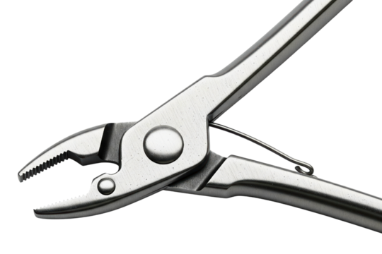 Stainless steel surgical medical pliers tool with serrated jaws isolated with transparent background