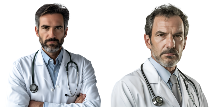 Portrait of Mature Male Doctors with Stethoscope on Transparent Background