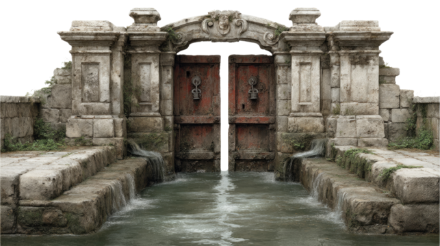 Rustic Stone Arch Bridge Isolated on Transparent Background, Ideal for Architectural, Historical, and Medieval-Themed Designs