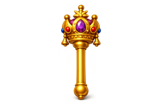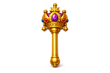 Golden royal scepter with jewel inlays for fantasy and medieval design elements