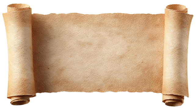 Old blank parchment scroll with aged texture presenting an antique document paper on a transparent background