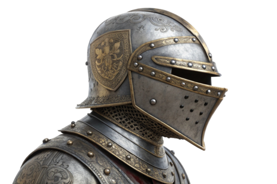 Medieval knights in armor with swords and shields showcasing different designs and colors, isolated on transparent background