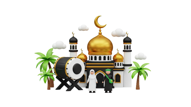 3D Islamic Icons: Kaaba, Sheep, Palm Tree, Moon, and Stars