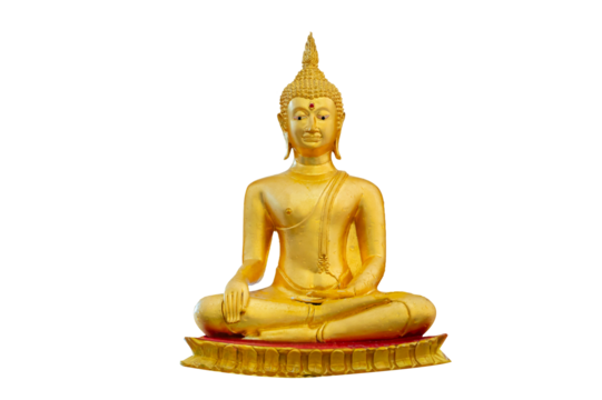 Golden Buddha statue meditating isolated on transparent background PNG file