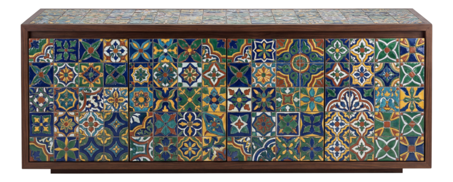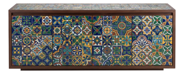 A vibrant mosaic tile buffet to brighten up your Mediterranean-style kitchen.