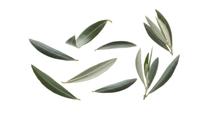 Olive Leaves Isolated Fresh Green Sprigs for Healthy Cooking, Mediterranean Diet, Natural Food