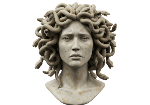 Isolated Medusa Head Sculpture with Serpentine Hair and Intricate Detail